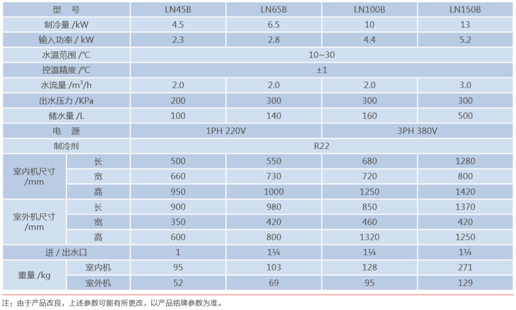 根據用戶要求的制冷量而定制,分為室內機和室外機,視功率大小室外機或為單臺和多臺分別控制運行。 分別控制運行。配 PLC 彩色液晶觸摸屏,功能強大,結構緊湊。室內控制系統無噪音,無排放,節能環保。